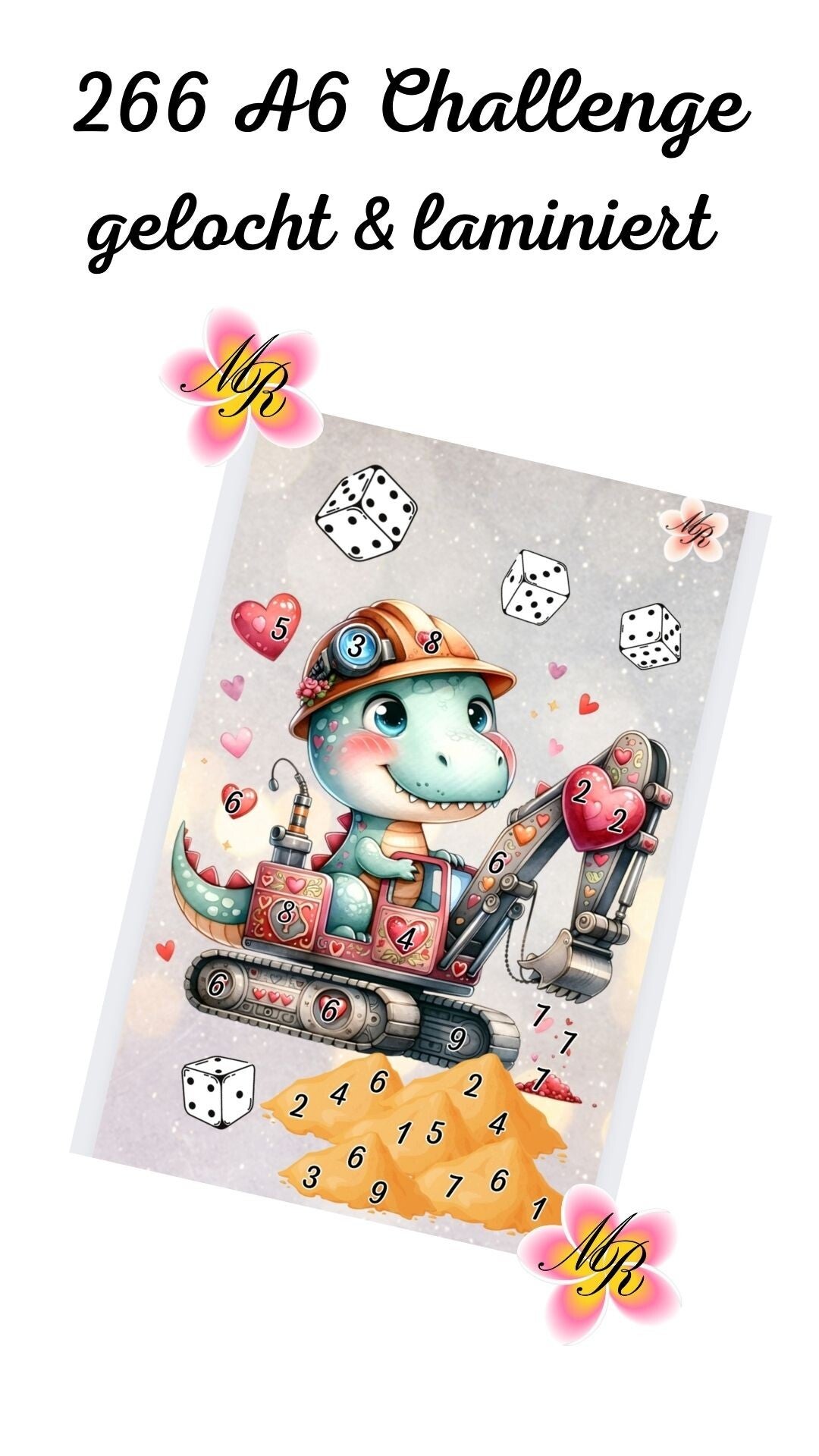 Eine laminierte und gelochte A6 Challenge zum abstreichen und würfeln