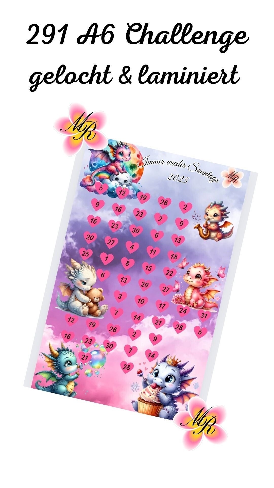 Eine laminierte und gelochte A6 Challenge zum abstreichen