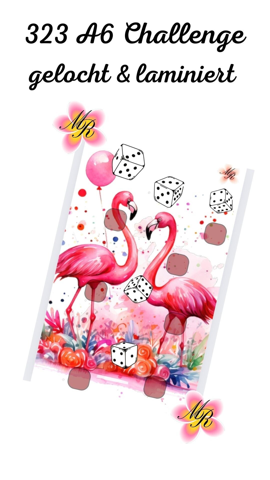 Eine laminierte und gelochte A6 Challenge zum würfeln