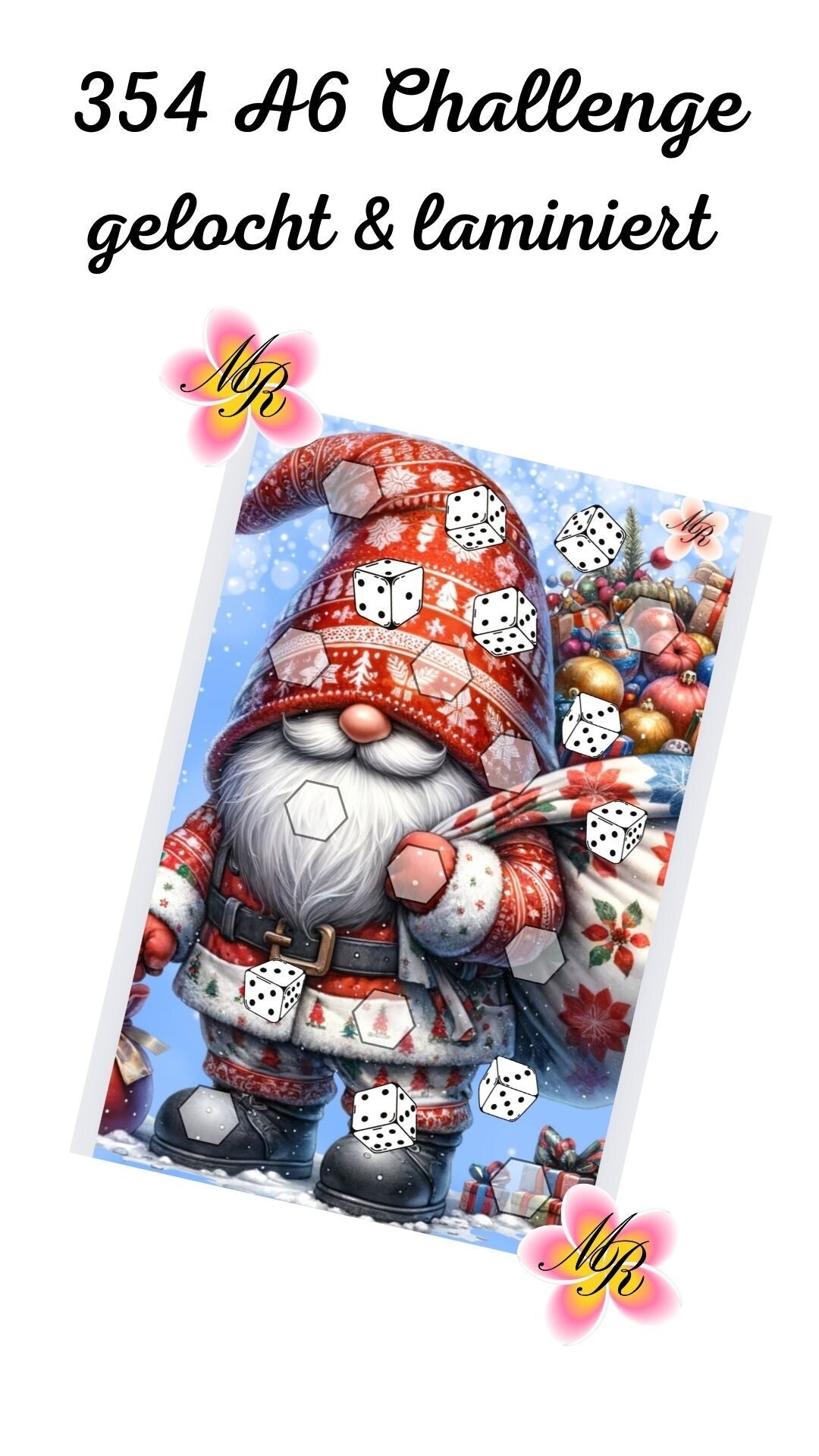 Eine laminierte und gelochte A6 Challenge zum würfeln