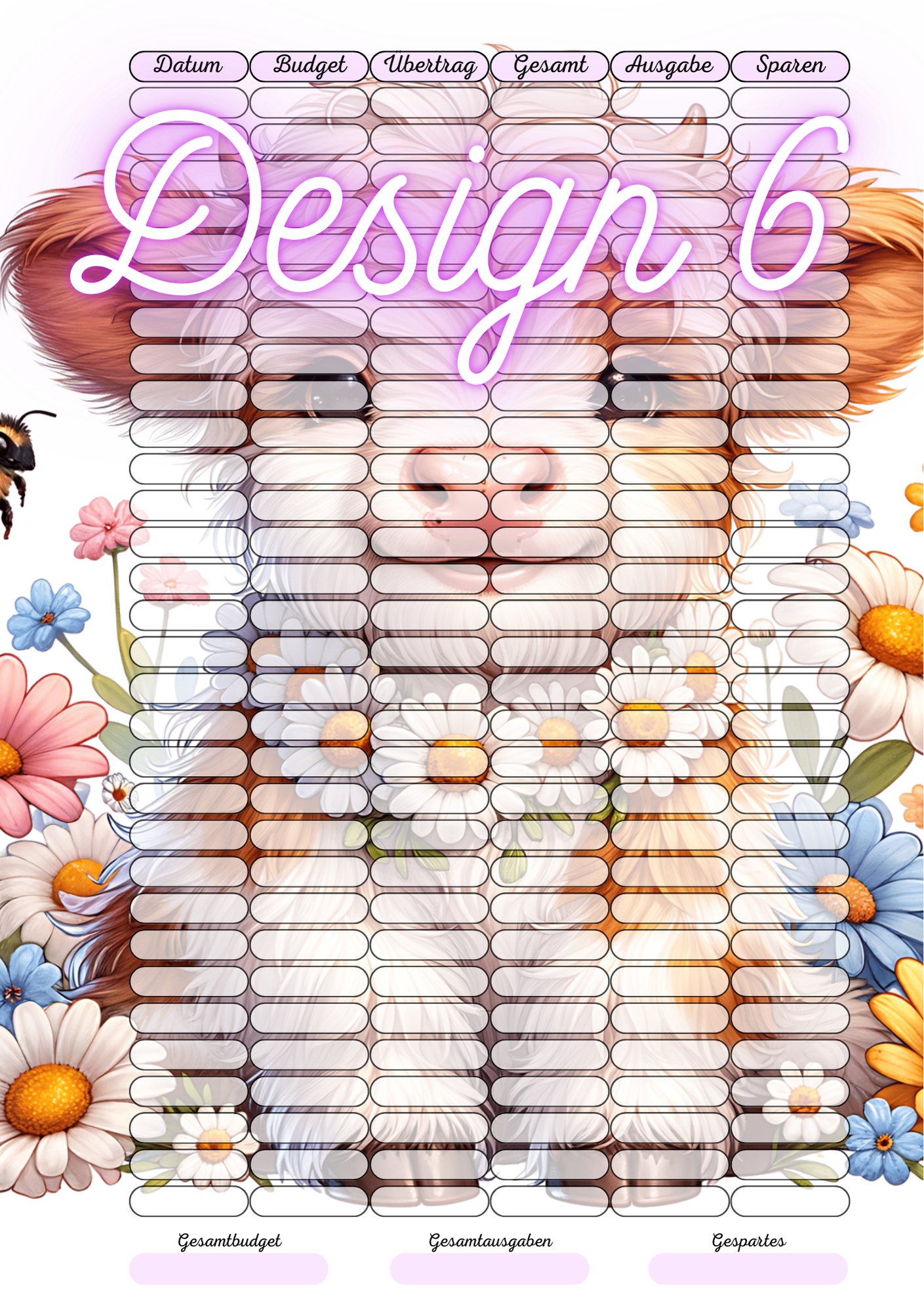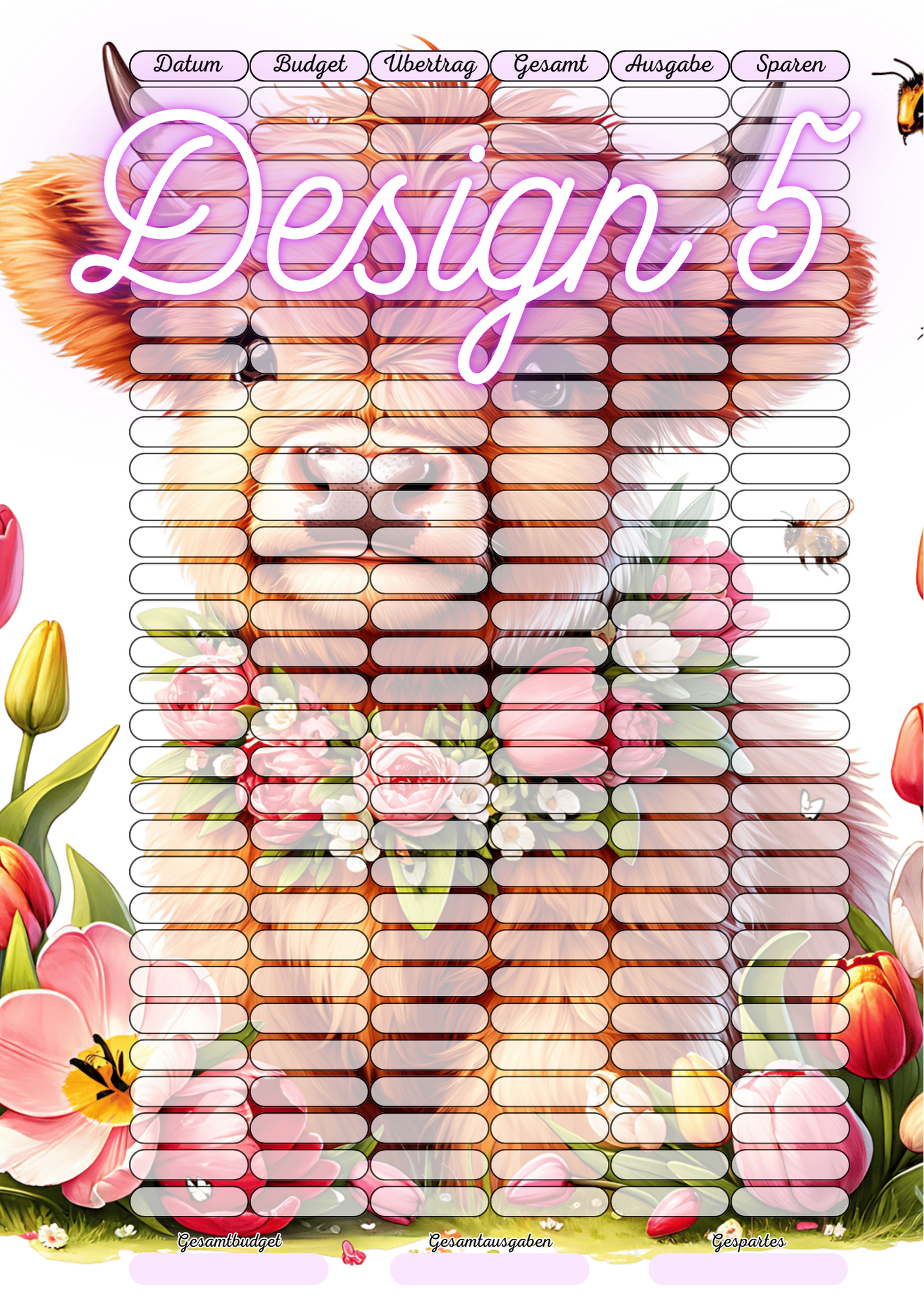 Ein laminierter und gelochter A5 Tagesbudget-Tracker zum aufschreiben deiner Ausgaben