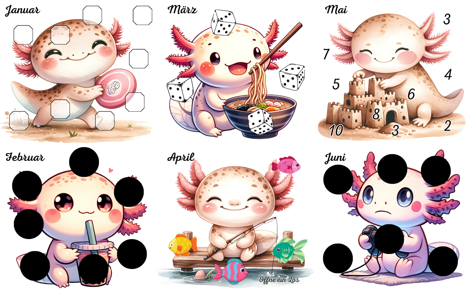 Zwei 3er Klappkarte zum abstreichen, rubbeln,losen und würfeln