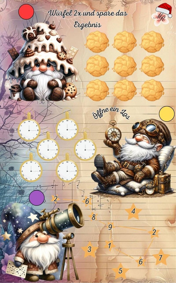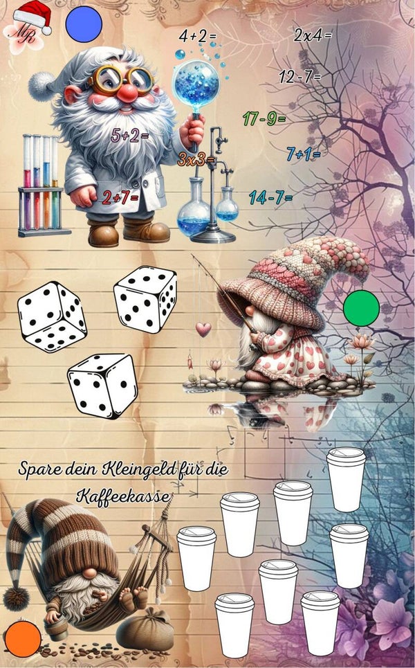 Eine laminierte und gelochte A6 Challenge zum losen, abstreichen und würfeln.