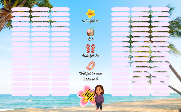 Eine laminierte und gelochte A6 Challenge zum abstreichen,losen, rubbeln und würfeln.