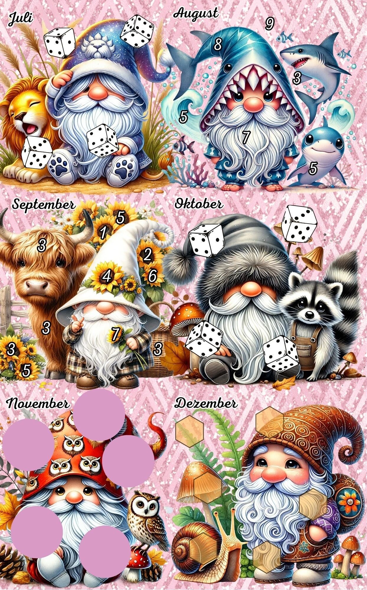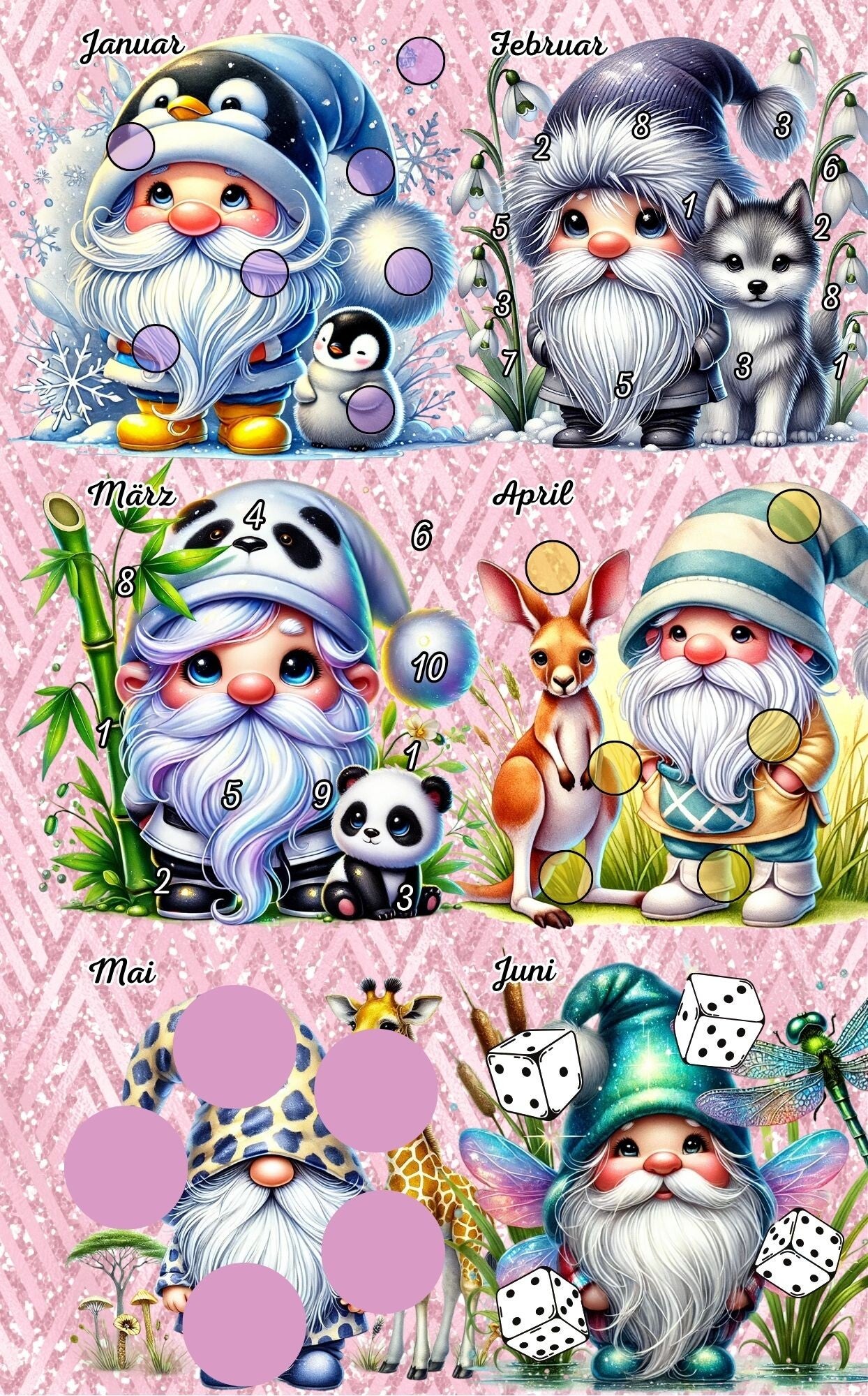 Zwei laminierte und gelochte A6 Challenge zum abstreichen, rubbeln, losen und würfeln
