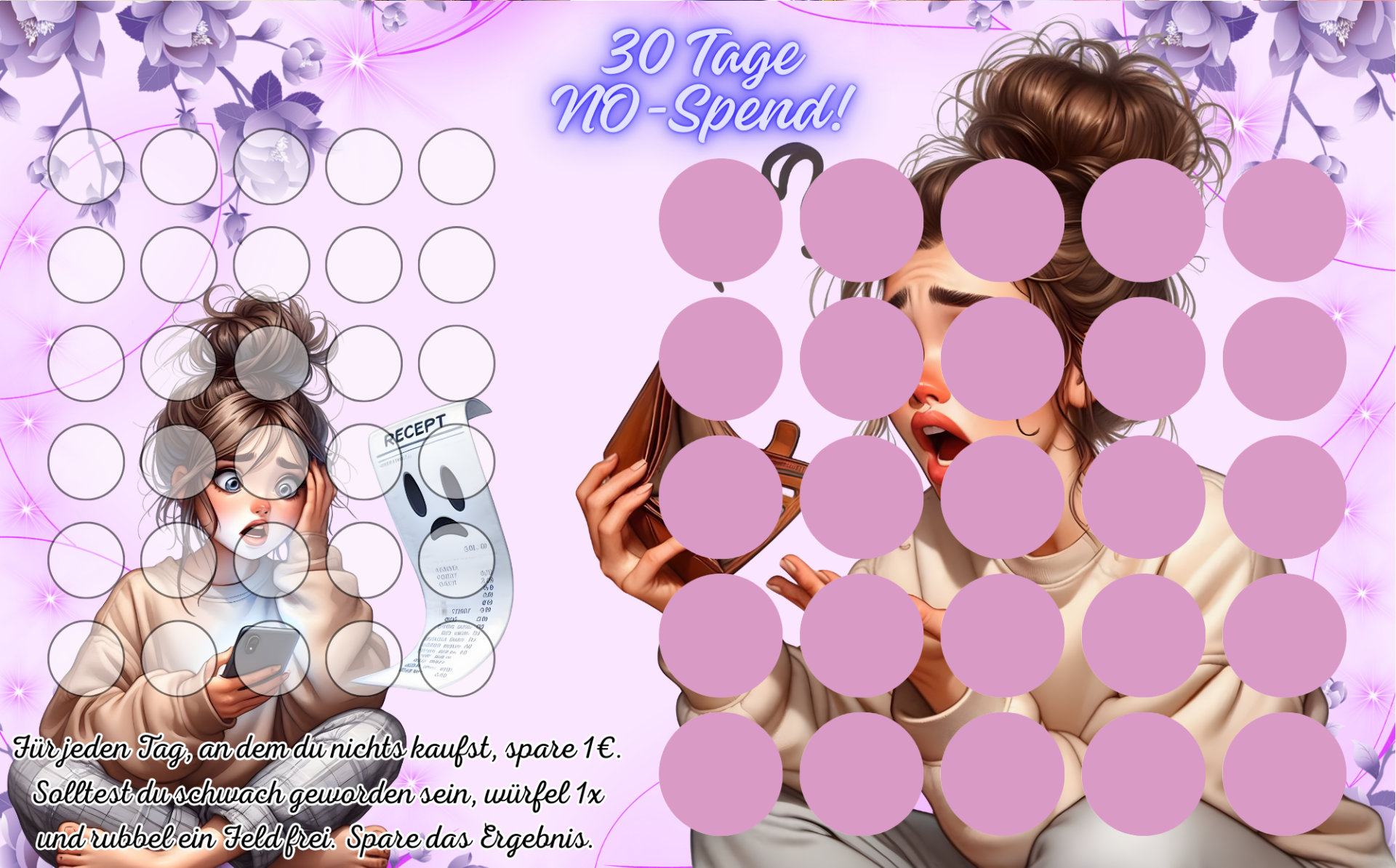 Dieses Set besteht aus 4 laminierten und gelochten A6 Challenge zum abstreichen, würfeln und rubbeln.